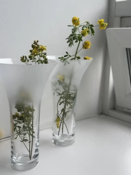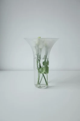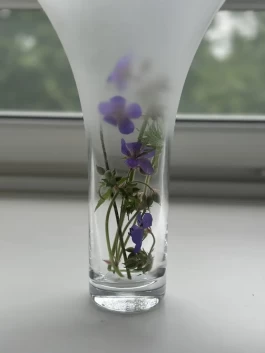 My question : Here is a story of an imaginary flower "(full story)" How does the vase look like for this flower? Describe the vase for this shy flower in detail : shape, color, material, and so on.