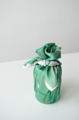 After enjoying the fabric, "Jogak-bo" starts a new journey instead of being thrown away. It can be used as gift wrap, with details like from, to, date, and a brief note written on it. When the gift is given, the receiver is invited to reuse the fabric in the same way, creating a positive memory and contributing to sustainability.